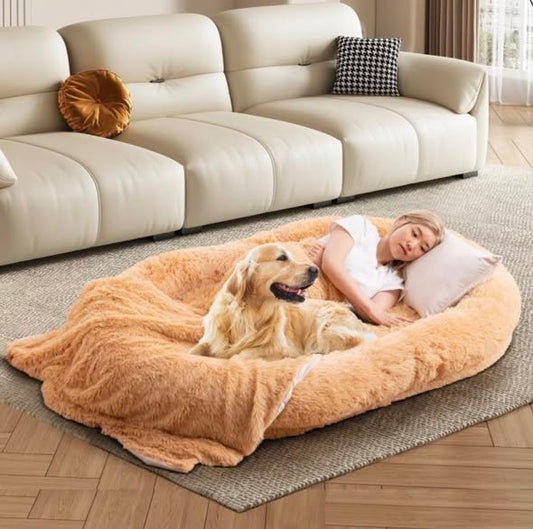 Orthopedic Dog Bed Human Dog Bed Washable Fluffy w/Soft Blanket and Plump Pillow