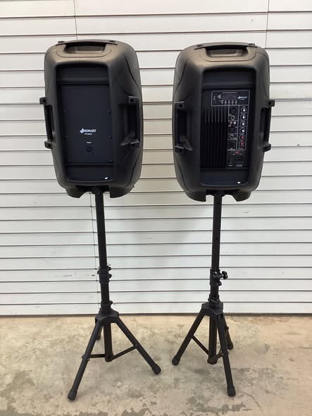Costway Dual 12 in 2 way 2000W Powered Speakers with Mic Speaker Stands Control Cables