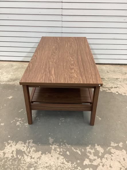 47 in. Walnut Rectangle MDF 2-Tier Rectangle Coffee Table with Slatted Storage Shelf and Thickened Tabletop