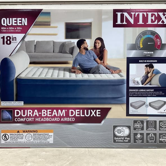 Intex Queen DuraBeam Headboard Air Mattress w/ Internal Pump