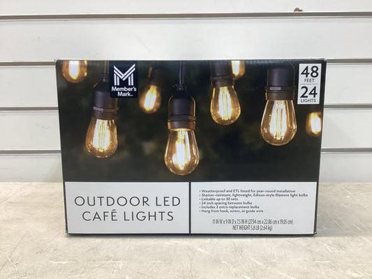 Member's Mark 48' Outdoor LED Café String Lights, 24 Bulbs