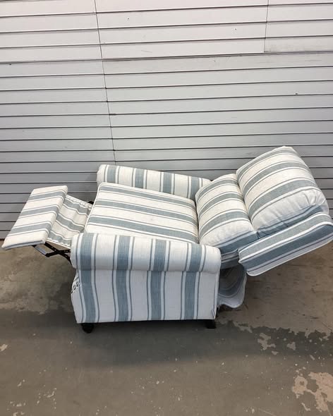 Ameiah Upholstered Farmhouse Blue Stripped Manual Push Back Recliner with Solid Wood Legs