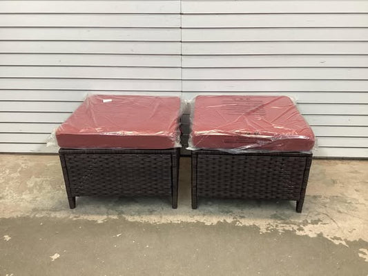 MoonLuxe Brown Wicker Outdoor Ottoman with Olefin Red Cushions Patio/ Porch (2-Pack)