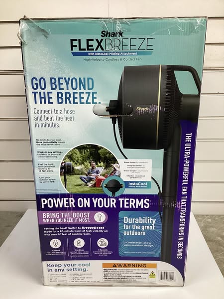Shark FlexBreeze Fan with InstaCool Mist Attachment, Cordless & Corded, Outdoor & Indoor