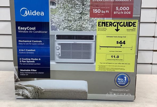 Midea 5,000 BTU Room Window Air Conditioner, Mechanical Control, DOE, For Spaces up to 150 Sq. Ft., MAW05M1YWT