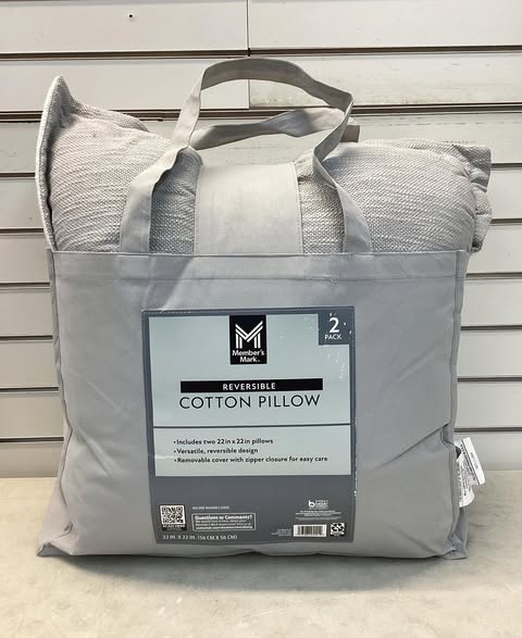 Member's Mark 2-Pack Reversible Cotton Slub Pillows, Color Silver/White