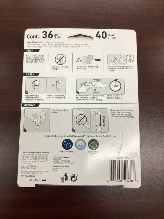 3M Command Damage Free Indoor/Outdoor Clear Light Clips, 36 Clips, 40 Strips