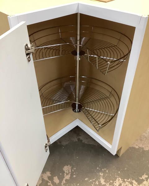 Hampton Bay Hampton 28.5 in. W x 16.5 in. D x 34.5 in. H Assembled Lazy Susan Corner Base Cabinet in Satin White