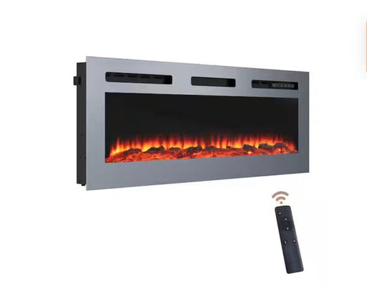 Boyel Living 50 in. Wall Mounted and Recessed Stainless Steel Electric Fireplace in Silver