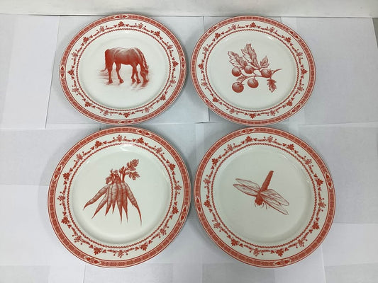 Blue Stallion Red and White Collectible Assorted Farm Animals and Veggies Dinner Plates