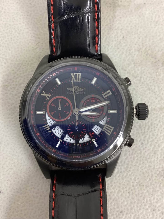 Men’s Balmer Roman Numerals Swiss Black Leather Band With Red Stitching