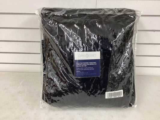 North Shore Living Knit & Faux Fur Throw Blanket & Pillow Set