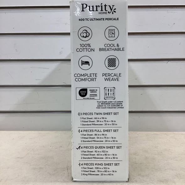 400 Thread Count Ultimate Percale Cotton Solid Sheet Set Queen Size - Purity Home