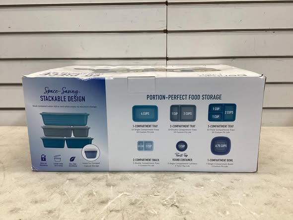 15 one-compartment trays, 15 two-compartment trays, 15 three-compartment trays, and 45 lids