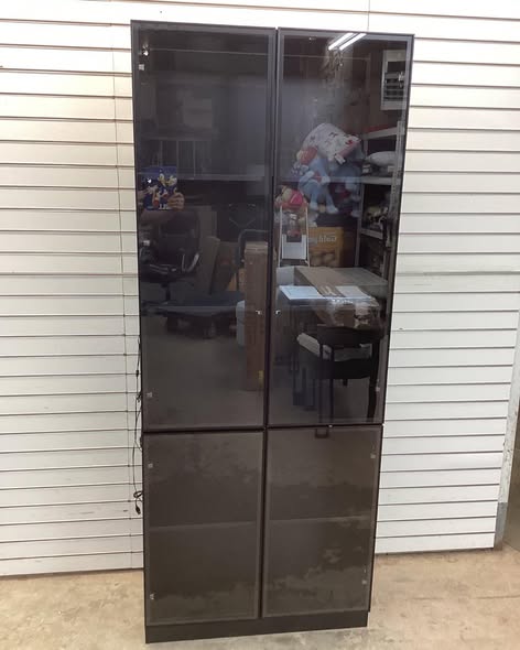 Collectibles Cabinet Display Shelf, Bookshelf Showcase for Living Room, Black Glass Door.