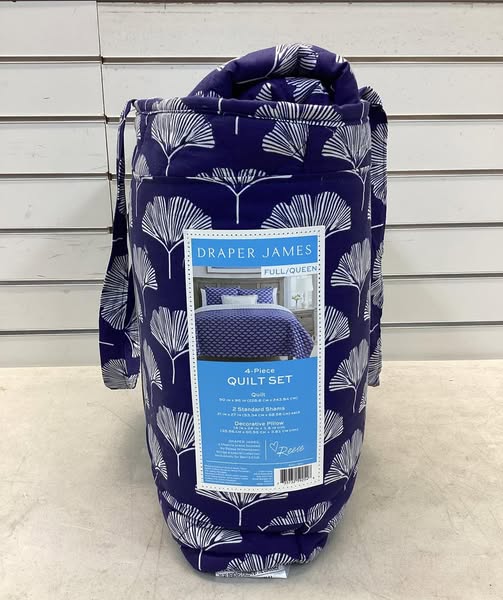 Draper James 4-Piece Printed Cotton Quilt Set, Full/Queen Size, Color Navy Blue