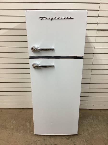 Frigidaire 7.2 cu. ft. Retro Top Freezer Refrigerator in white with Chrome Handle and Trim