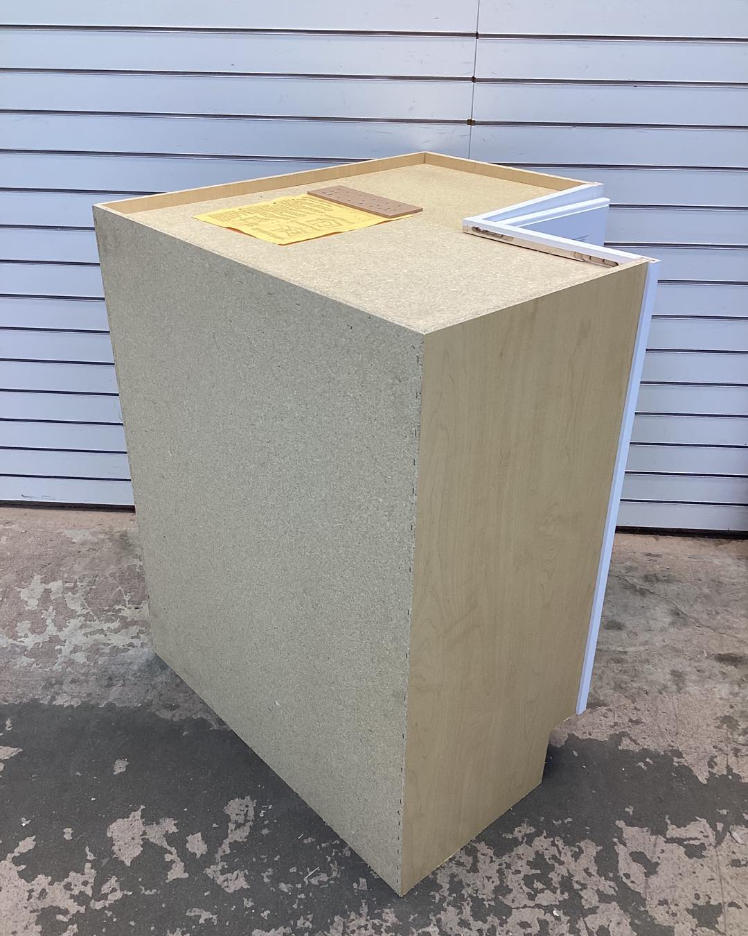 Actual cabinet is 16 1/2 in. in depth and must be pulled from wall, additional cleating for countertops may be required - not included