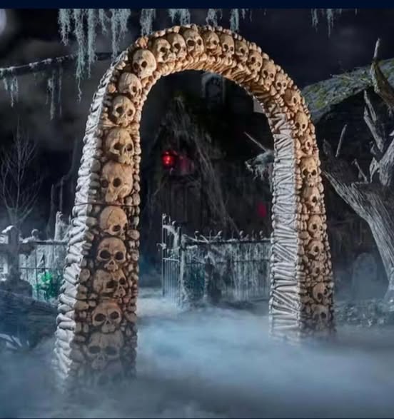 7.5 ft. Skull and Bones Archway. It works well in an indoor or outdoor setting. The bone and skull details make this a creepy option and perfect greeting for your home guests.