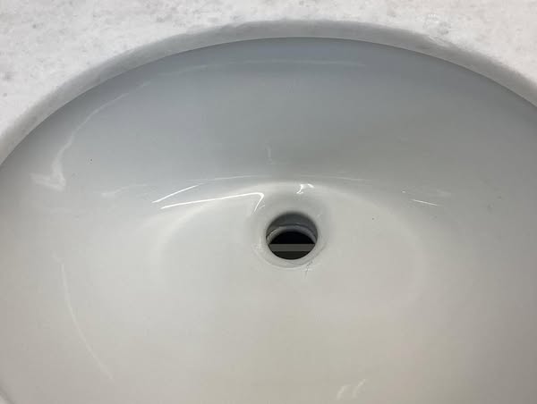 Durable marble vanity top includes two pre-attached ivory porcelain under-mount sinks