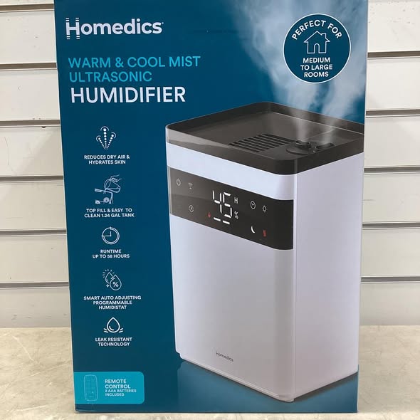 Homedics Premium Warm & Cool Mist Ultrasonic Humidifier, Topfill, 58 Hour Runtime