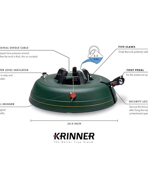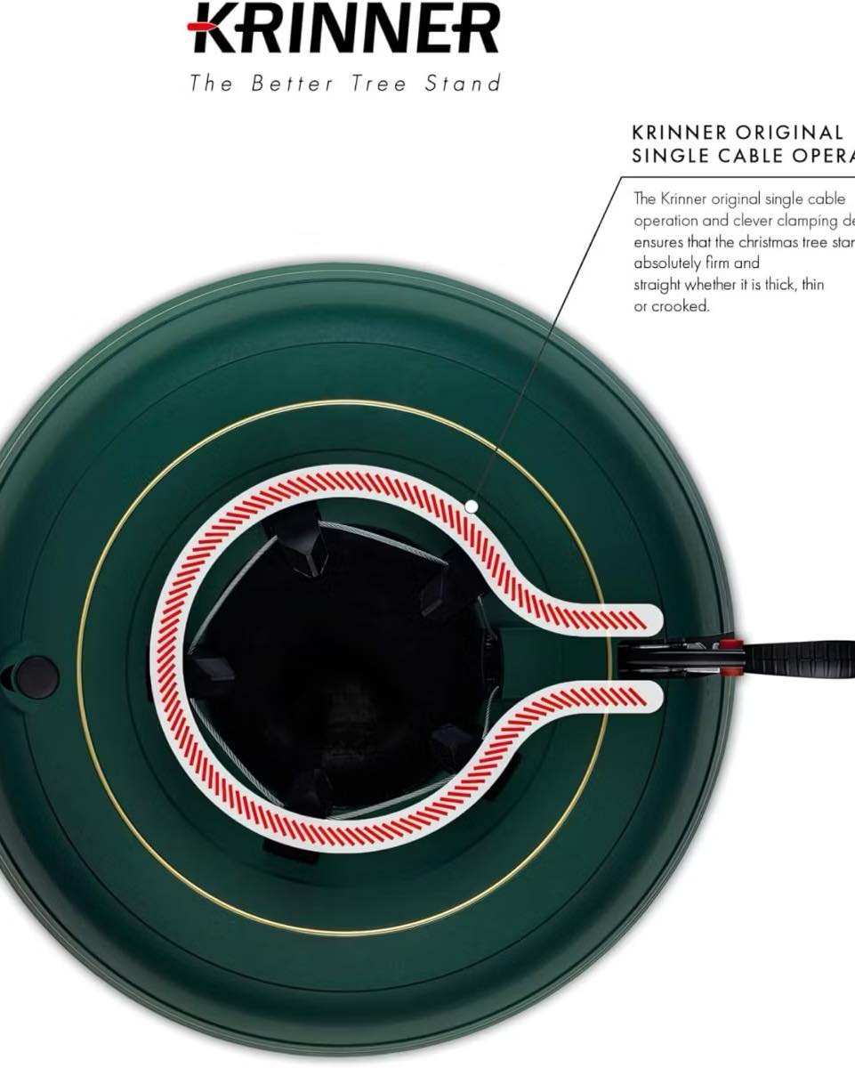 Featuring Krinner's innovative single cable operation and clever clamping device, this stand guarantees even claw pressure around the trunk, ensuring your tree stands perfectly straight.
