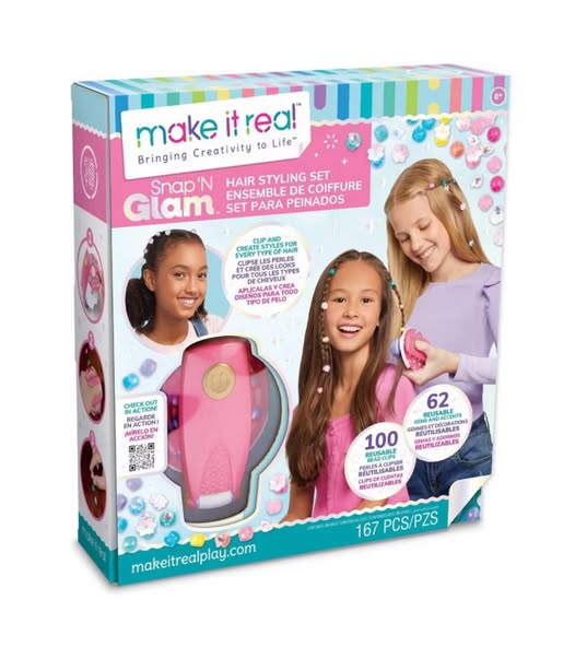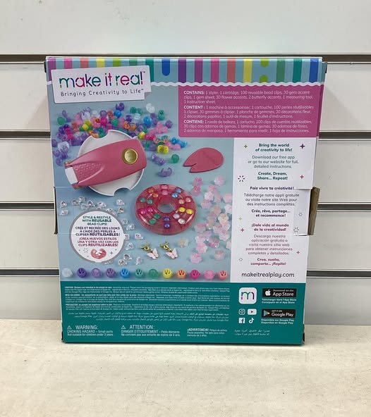 Using the included 100 bead clips with butterfly, gem, and flower accents, young fashionistas can create looks that express their unique styles.
