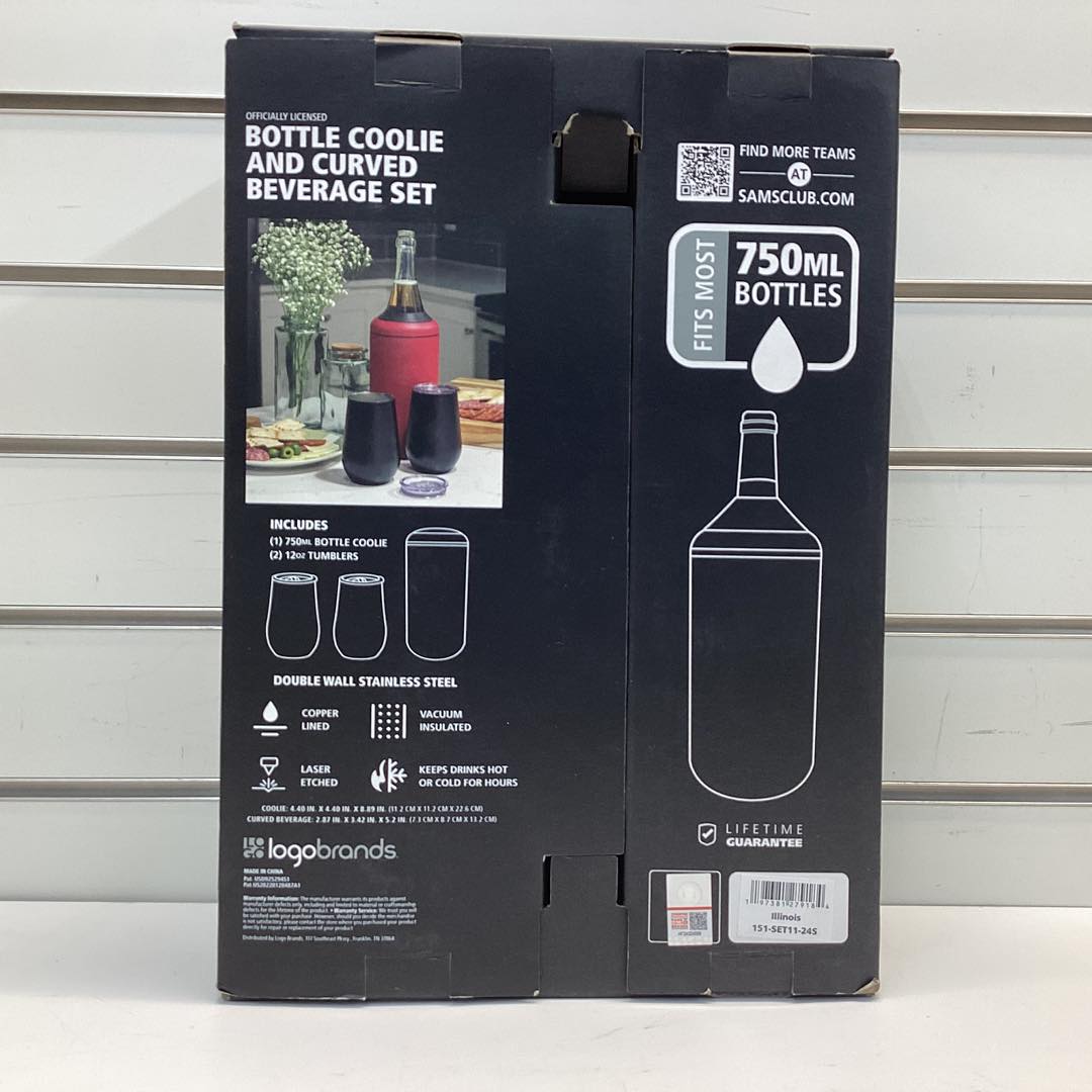 Set includes two, 12oz tumblers and a 750 mL bottle coolie.