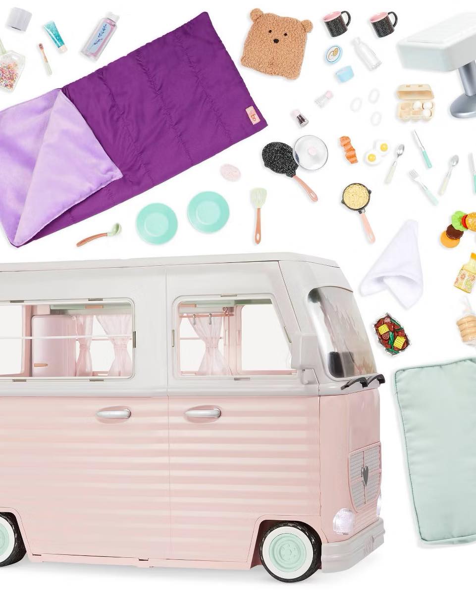 58-pc Doll Camper Playset: Little campers can create the ultimate road trips with the Our Generation RV Country Cruising playset for 18-inch dolls!