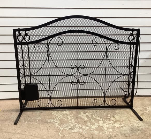 VEVOR Fireplace Screen 38 in. x 26.5 in. 1-Panel Heavy-Duty Iron Freestand Spark Guard with Support Fireplace Screen