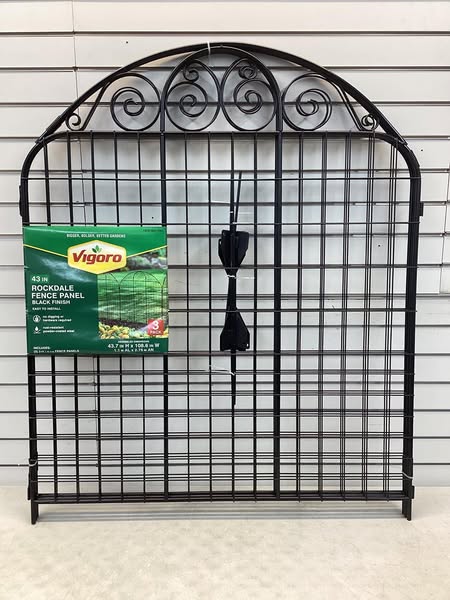 Vigoro Rockdale 43.8 in. Black Steel Fence Panel (3-Pack)