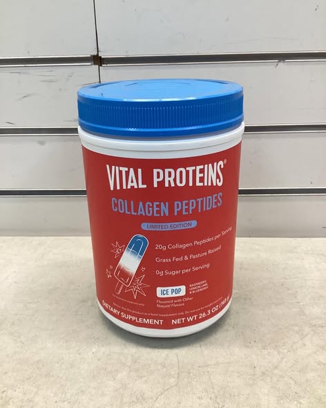 Each Serving provides 20g of Hydrolyzed Bovine Collagen Peptides, in limited edition Ice Pop flavor: Raspberry, Lemon Lime and Blueberry